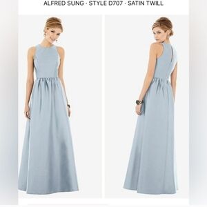 Alfred Sung Hunter Green Square Neck Satin A-Line Gown D826
