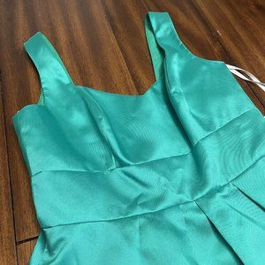 Alfred Sung Jade Green Satin Cocktail Bridesmaid Dress with Pockets Size 12