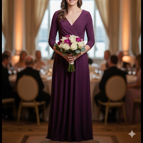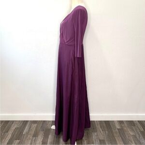 Alfred Sung Mikado 3/4 Sleeve V-Neck Maxi Dress Purple Size 8 Bridesmaid