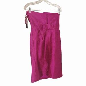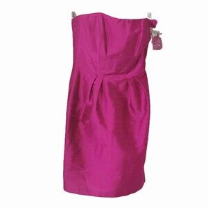 Alfred Sung NWT $235 Watermelon Pink Brushed Silk Strapless Sheath Dress, Size 8