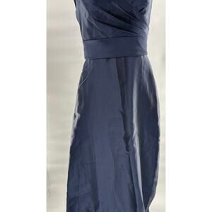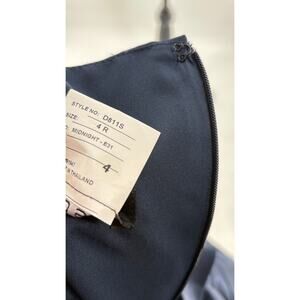 NWOT Alfred Sung Off Shoulder Satin Dress in Midnight Blue. Size 4.