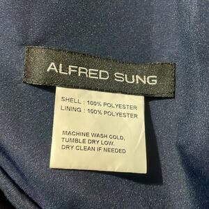 Alfred Sung Off The Shoulder Satin Navy Maxi Gown New Retails $239