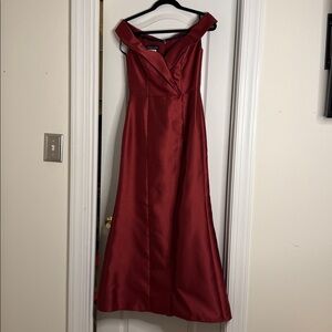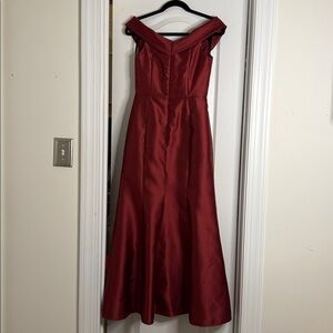 Alfred Sung Off-The-Shoulder Satin Gown - Burgundy - 4