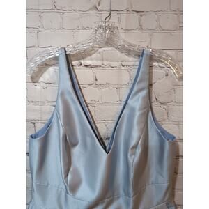 Alfred Sung Pleated Midi Light Ice Blue Fit Flare sleeveless Dress Pockets Sz 14