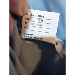 Machine washable. Dry clean if needed. Has pockets! Beautiful shimmery ice blue.