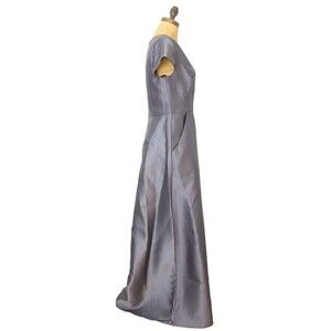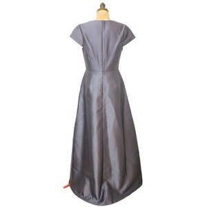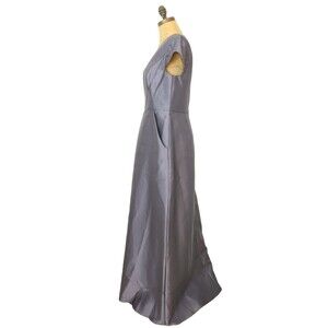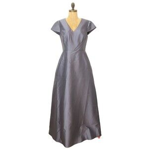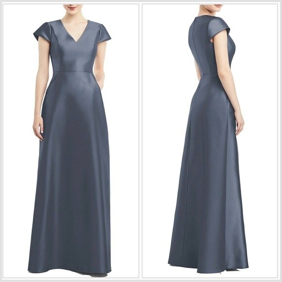 Alfred Sung Sateen Twill Cap Sleeve Dress 8 Gown Silverstone Gray V-Neck NWT B3