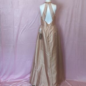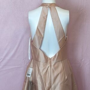 Alfred Sung Sateen Twill Halter Neckline Bridesmaid Dress in Toasted Sugar