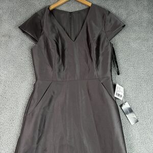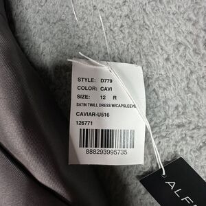 Alfred Sung Satin Twill Maxi Dress Gray 12R NWT Cap Sleeve Wedding Formal Gown