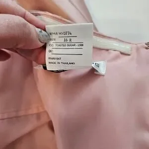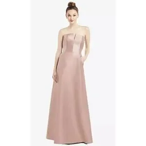 Alfred Sung Satin Twill Strapless Notch Dress Pockets in Toasted Sugar Size 16