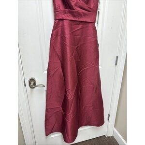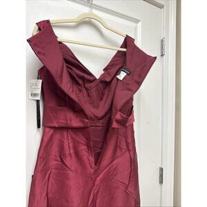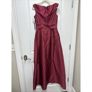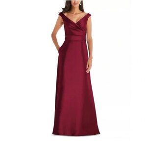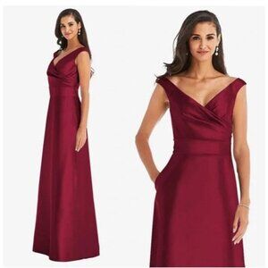 Alfred Sung Size 4 Burgundy D811S Off Shoulder Satin Maxi Gown Cocktail Dress