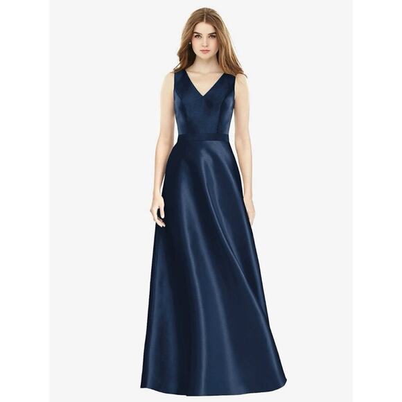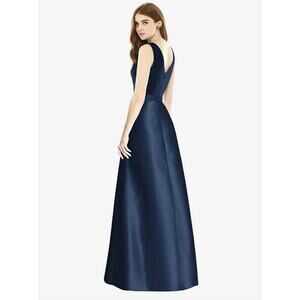 Alfred Sung Sleeveless A-Line Satin Princess Dress w Pockets Midnight Blue Women's 4 $231