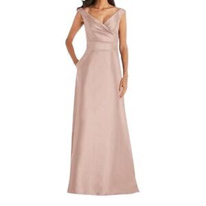 Alfred Sung Toasted Sugar One Shoulder Satin Maxi Dress Size 8 NWT FLAWS