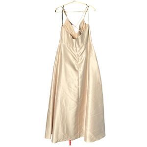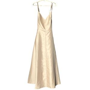 Alfred Sung V-Neck Full Skirt Satin Maxi Dress in Palomino. Size 16. NWT!