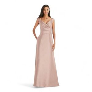 Alfred Sung V-Neck Gown 16 Twill Toasted Sugar Pink Dress RUNS SMALL NWT B34