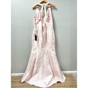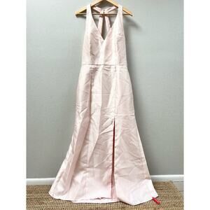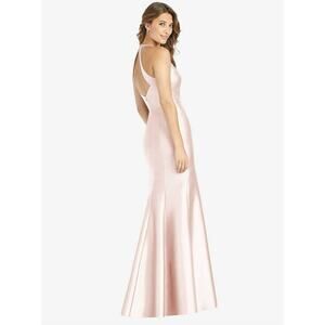 Alfred Sung V-Neck Halter Satin Trumpet Gown in Blush Pink Women's Size 16 $244