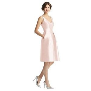 Alfred Sung V-Neck Pleated Skirt Cocktail Dress with Pockets in Blush Size 8