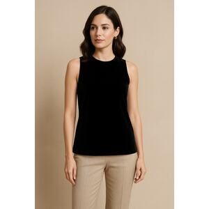 Alfred Sung Velvet High Neck Flare Tank Top Small Black Vintage Formal Old Money