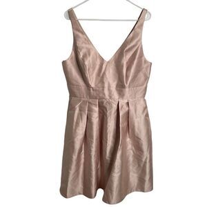 Alfred Sung Womens Cocktail Dress 16 Blush VNeck Pleated Knee Length Old Money