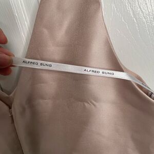 Alfred Sung Womens Cocktail Dress 16 Champagne VNeck Pleated Knee Length Old Money