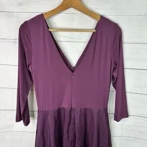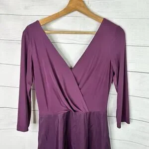 Alfred Sung Womens size 8 3/4 Sleeve Draped Full Skirt Dress Gown Aubergine D736