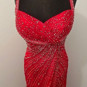 Alfred Angelo, Red Beaded Maxi Prom Dress