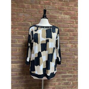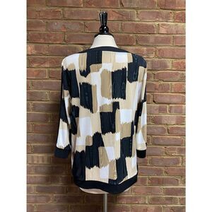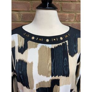 Alfred Dunner Black & Beige 3/4 Sleeve Jeweled Blouse Size Small