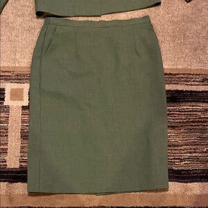 Chic green pencil skirt suit by Alfred Dunner. Perfect for a polished look. Skirt is a size 12, jacket a size 10.