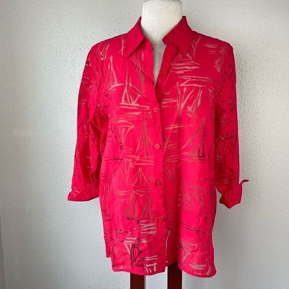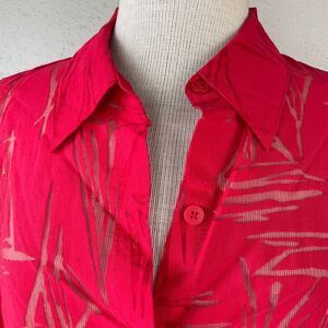 Alfred Dunner Red Sheer Button Down Shirt Size 14 EUC