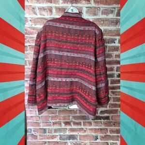 alfred dunner vintage cardigan, plus size aztec jacket, red geometric print sweater, 24w open front coat, padded shoulder vintage style, poshmark plus fashion, retro alfred dunner sweater, bold pattern oversized top, classic 90s style cardigan, cozy cotton blend outerwear