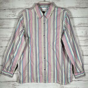 Alfred Dunner Whimsical Multi Stripe Button Up Shirt Cotton Poly Long Sleeve 18
