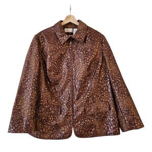 Alfred Dunner Women Animal Print Faux Leather Jacket Brown Size 16W