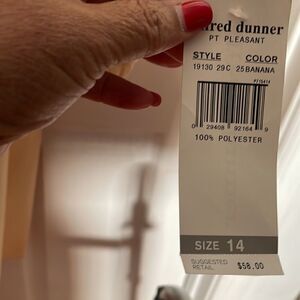 Get ready for Spring! Color Banana Zip Up Jacket with beaded appliqués in front side pockets. Pants pull on side pockets elastic hem. Set is Size 14 Proportioned Short 100% Polyester