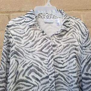 Alfred Dunner Black White Animal Print Blouse.