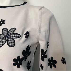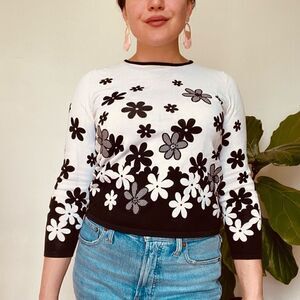Alfred Dunner Floral Mod 60s style sweater flower power