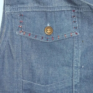 Good condition. Alfred Dunner Floral Print Denim Vest. Beading all around trimming. Bottom back of beading missing as seen in pictures.
