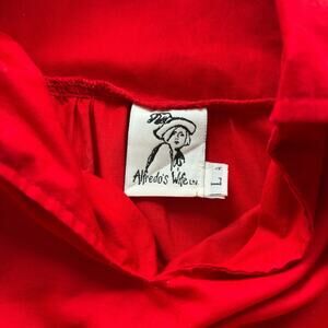 Alfredo’s Wife peasant poet blouse red pullover puff sleeve elastic cuff 80s/90s