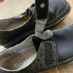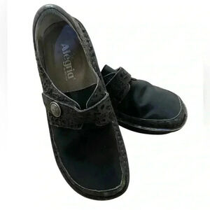Algeria Den-435W Brenna embossed shoes flat black women slip on leather 38 (7.5)