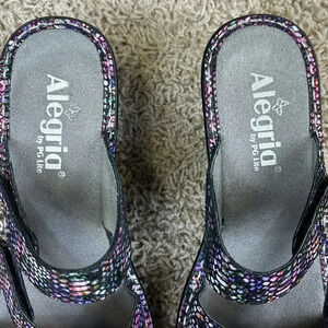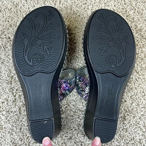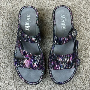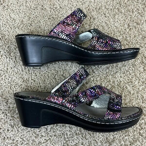 Algeria Loti purple iridescent leather three strap wedge sandals sz 37