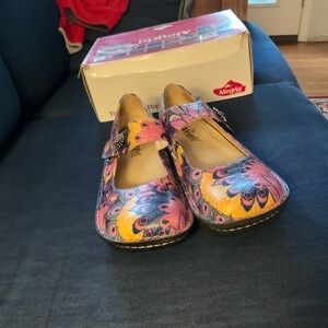 New, in the box!!! A timeless style with an Alegria twist, the Paloma is the perfect shoe for any occasion. This easy-fit Mary Jane features colorful leather uppers, with unique ornamentation. This popular Mary Jane features an adjustable hook-and-loop close strap, adorned with a unique ornament. For added comfort and support, it incorporates an ergonomically designed memory foam and cork footbed that's easily removable with a classic rocker outsole that creates a natural rolling motion when walking. This pair is women’s EU size 41