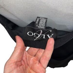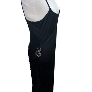 Algo Women's Night Out Dress in Size 8. Spaghetti Strapped Sheath Dress , 100% Polyester. Draped in the back (it could probably be draped in the front too) with a Metal Swirl that hooks into the side. Zipper Closure, uneven hemline. Good Condition.