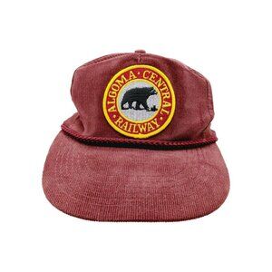 Algoma Central Railway Corduroy Red Hat SnapBack Hat Cap Rope Vintage