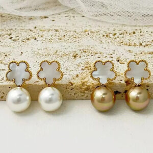 Alhambra Brown Clover 18K Gold Stainless Steel Waterproof Earrings