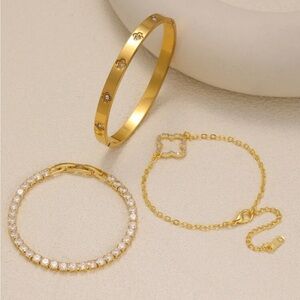 Alhambra Gold Floral Bracelet Set with Crystal Accents – Luxe Inspired