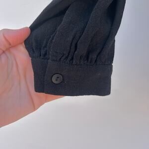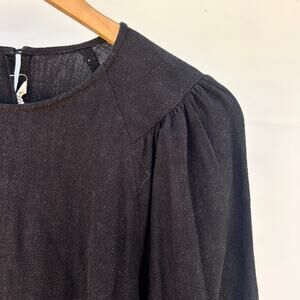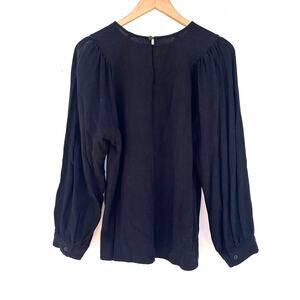 Ali Golden Black Long Sleeve Puff Shoulder Blouse Small Linen Shirt Top