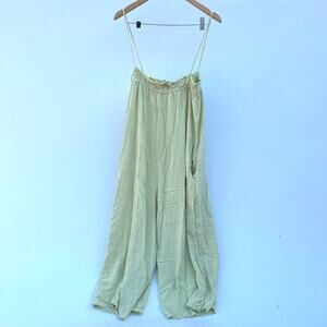 Ali Golden Elastic Jumper Jumpsuit Linen Yellow Citron Wide Leg Alienates Large