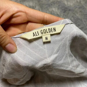 Ali Golden Gray White Wrap Dress Midi Geometric Print Medium