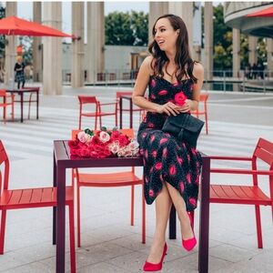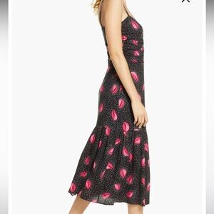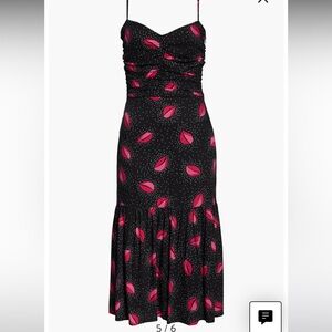 Ali & Jay Ariel Dress Midi Novelty Print Lips Sexy Black Pink XS Ruched Dot