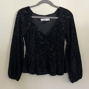 Ali & Jay Black LS Textured Velvet Peplum Top