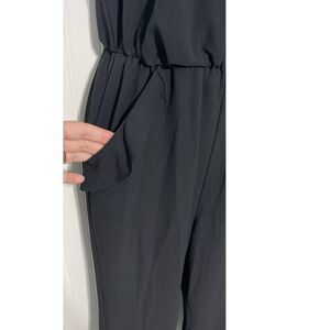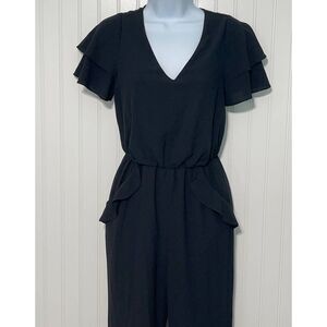 Ali & Jay Jumpsuit Wide Leg Ruffle Accent Surplice V-Neck Short Sleeve Black XS