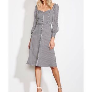 Whether you're window shopping uptown or roaming downtown, this knee-length dress, with its sweetheart neckline and covered buttons, hits all the right notes.